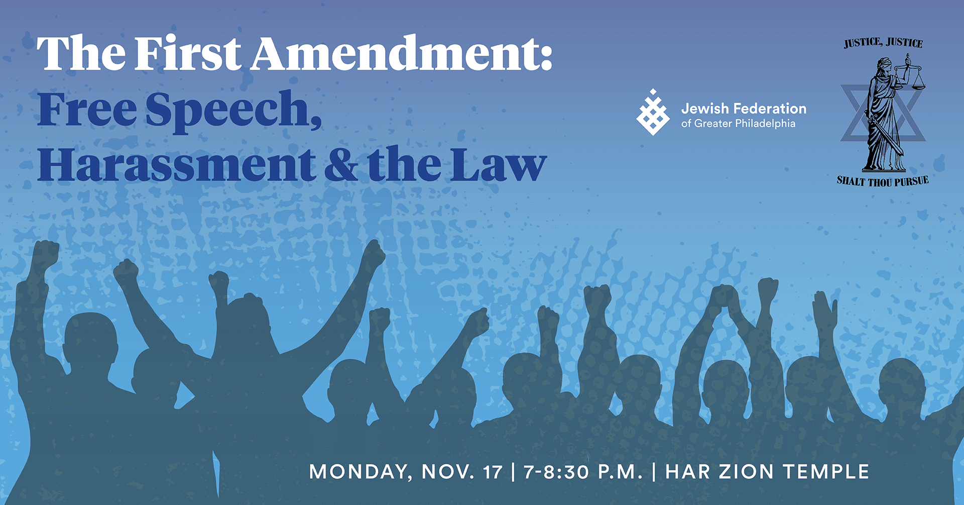 Thank you for your interest in attending JCRC’s The First Amendment: Free Speech, Harassment & the Law on Monday, Nov. 17 from 7 – 8:30 p.m. at Har Zion Temple.